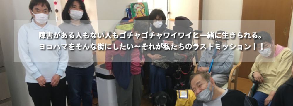 障害がある人もない人もゴチャゴチャワイワイと一緒に生きられる。ヨコハマをそんな街にしたい。 それが私たちのラストミッションです。 あなたは障害がある人と出会ったことがありますか?友達になったことがありますか?お酒を飲むと思いますか?どんな暮らしをしているか知っていますか? 少しでもそんなことに関心をもったら、私たちの団体のNPOインターンシップに参加してください。あなたの目の前にきっと新しい世界が開けるはずです。